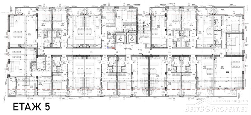 Vi presentiamo questo lussuoso condominio con appartamenti in vendita, composto da 7 piani e un cortile interno, situato nel quartiere di Ostromila, Plovdiv.