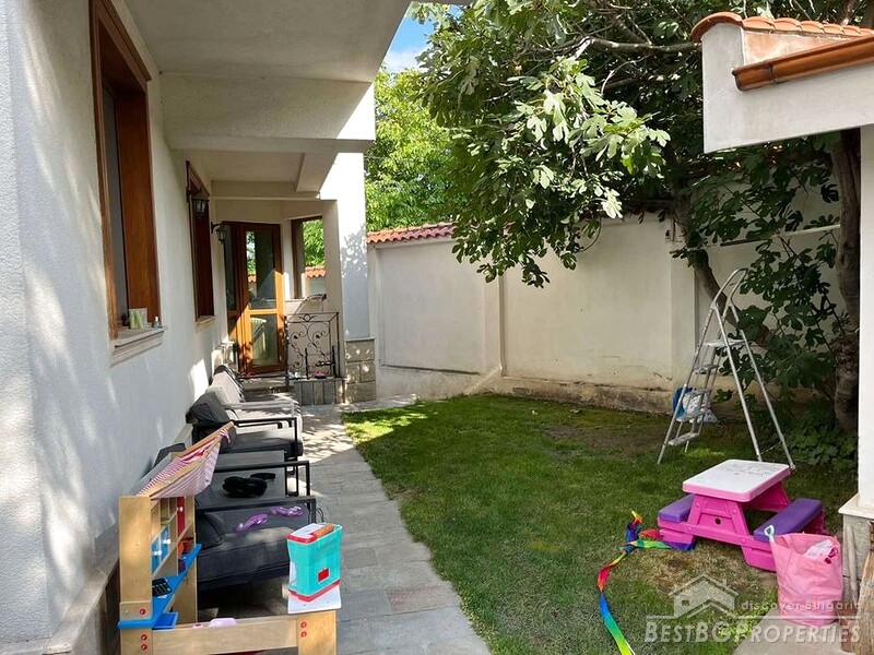 La casa è completamente arredata e pronta per essere abitata. Il giardino è decorato con loietto e fiori. Nel giardino si trovano una piscina, un barbecue con cucina, servizi igienici, parco giochi per bambini.