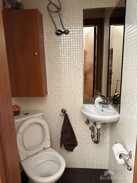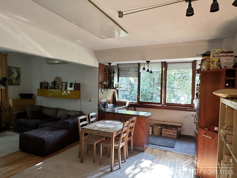 L'appartamento si trova nel quartiere Lozenets di Sofia, una zona ricca di verde, con edifici bassi e tranquilla, ma molto vicina al centro della capitale. L'immobile si trova alla fine di una strada tranquilla e verdeggiante, che conduce direttamente alla stazione della metropolitana James Boucher. In pochi minuti a piedi si possono raggiungere fermate di autobus e tram, asili nido, scuole materne e scuole, negozi di alimentari e un ospedale. Il Paradise Mall e il Park Center sono a una fermata di metropolitana.
