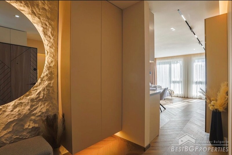 In vendita un lussuoso ed elegante appartamento con una camera da letto situato in un nuovo complesso recintato nel quartiere Ostromila di Plovdiv. Progettato per uso personale e rifinito secondo un progetto personalizzato, l'immobile si distingue per materiali di alta qualità, soluzioni intelligenti e raffinati dettagli interni.