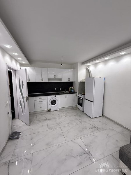 L'appartamento è nuovissimo, venduto con mobili ed elettrodomestici eleganti. L'edificio è dotato di ascensore, accesso controllato e gode di un'ottima posizione. L'immobile si trova in una zona comoda, nel quartiere di Vrabnitsa, vicino a negozi, mezzi pubblici, scuole e parchi.