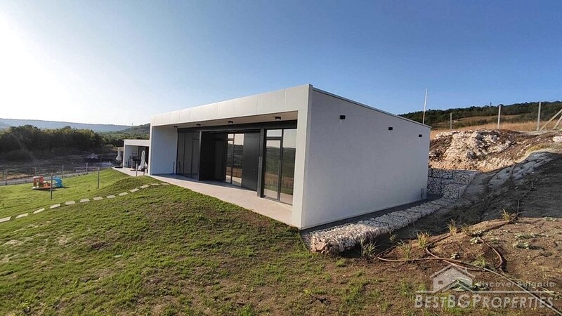 Vi proponiamo in vendita una casa moderna di nuova costruzione, a basso consumo energetico, con una superficie totale di 104 mq e un terreno di 780 mq, situata in una zona pittoresca tra i villaggi di Obrochishte e Tsarkva, nel comune di Balchik.